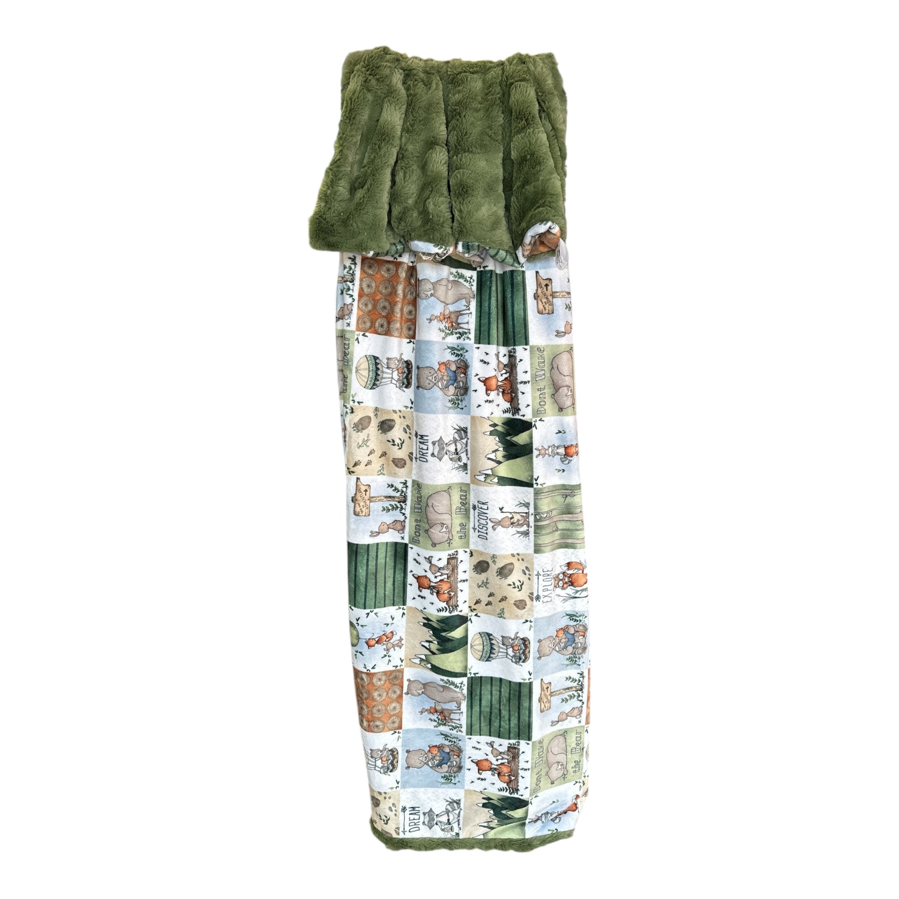 Sweet Melody, a whimsical Woodland lullaby wrapped in the softest snuggles with cuddly critters, gentle greens, and a whole lot of heart. This blanket is perfect for tiny dreamers and wild imaginations with three choices for the flipside in hide Minky, olive, safari or ginger.