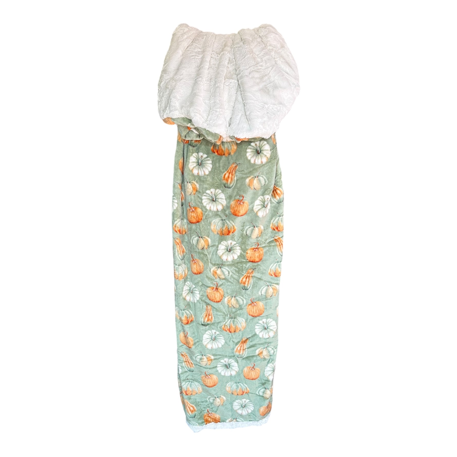It's pumpkin time! soft green minky with pumpkins and gourds with your choice of fluffy minky fabric in ginger.