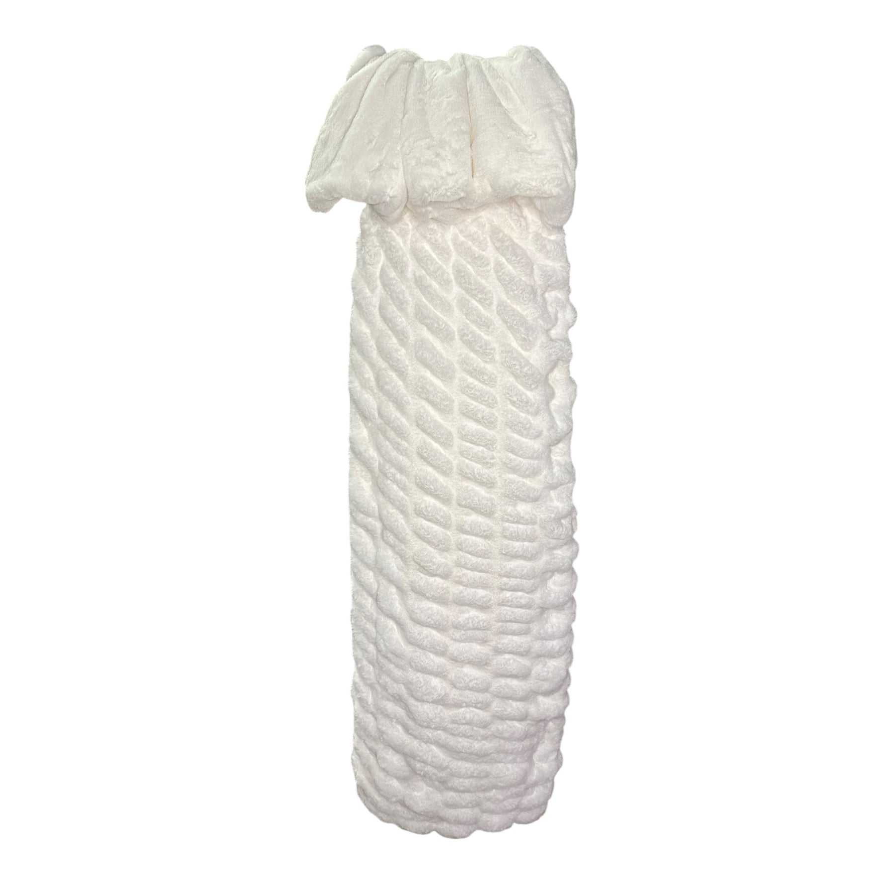 Our beautiful new Luxe Milan in natural is beautiful with a unique tonal texture. In addition to a luxuriously-high pile, it’s knitted with elastic so it’s extra stretchy and cascades into a rippling effect. Its backed with natural seal minky that takes this snuggle blanket to a new level of luxury.