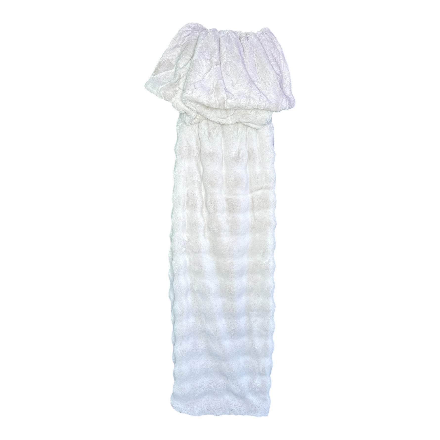 This powderpuff fabric has a distinctive wavy pattern that resembles the texture of rolling hills, this fabric offers both visual and tactile appeal. Offered in a beautiful pearl color with a matching pearl hide minky fabric on the flipside