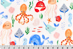 Can you find Claw-dia the Crab, Oscar the Octopus, Sea Biscuit the Sea Horse, Sting the Manta Ray, Tusker the Narwhal, Waldo the Whale, where is he? What about Shelly the Clam Shell, Minnie the Minnow, or The Jackfish Five? Hidden among the seaweed and the bubbles are even more Sea Pals like, Marmalade the Jelly Fish, Taylor the Star Fish, Fin the Puffer Fish and Aladdin the Urchin. Practical, Educational, Comfortable, and down right Adorable! You have a choice of hide minky on the flip side in baby blue, cardinal or tangerine.