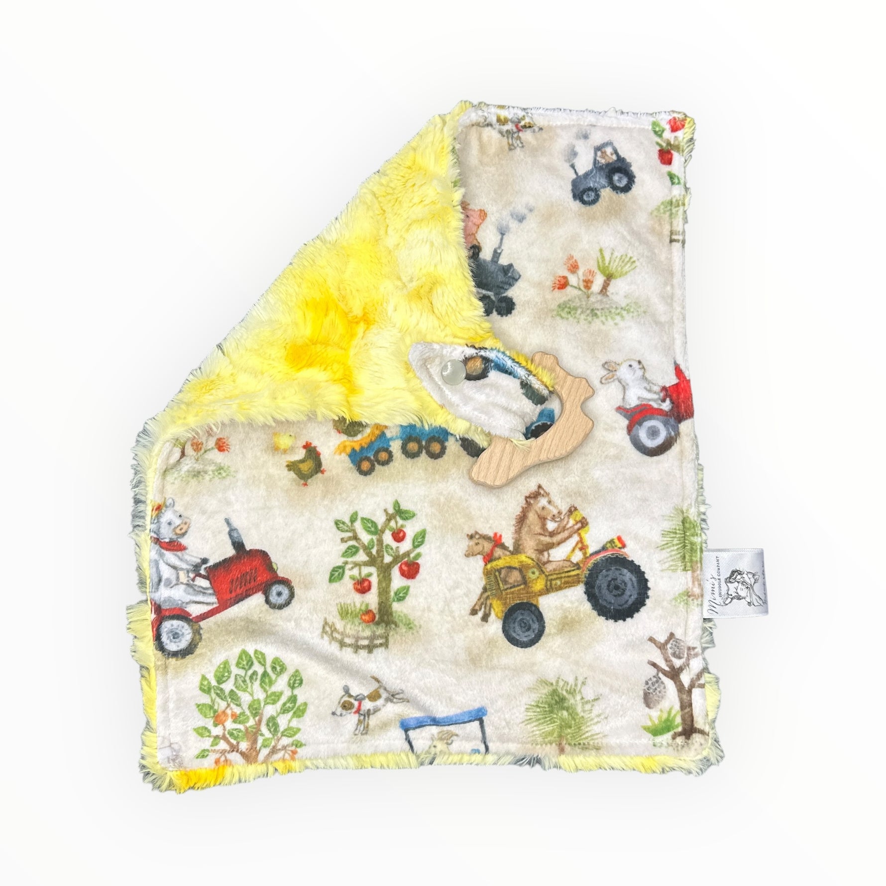 Old Mcdonald had a farm.. on this silky minky with either lemon drop or silver in fluffy hide minky for the flip side