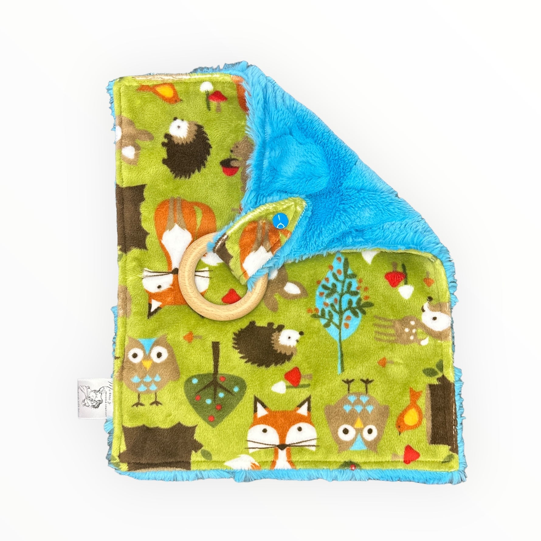 Cute little foxes and woodland animals on this silky minky fabric with your choice of Aquarius or ginger fluffy minky fabric