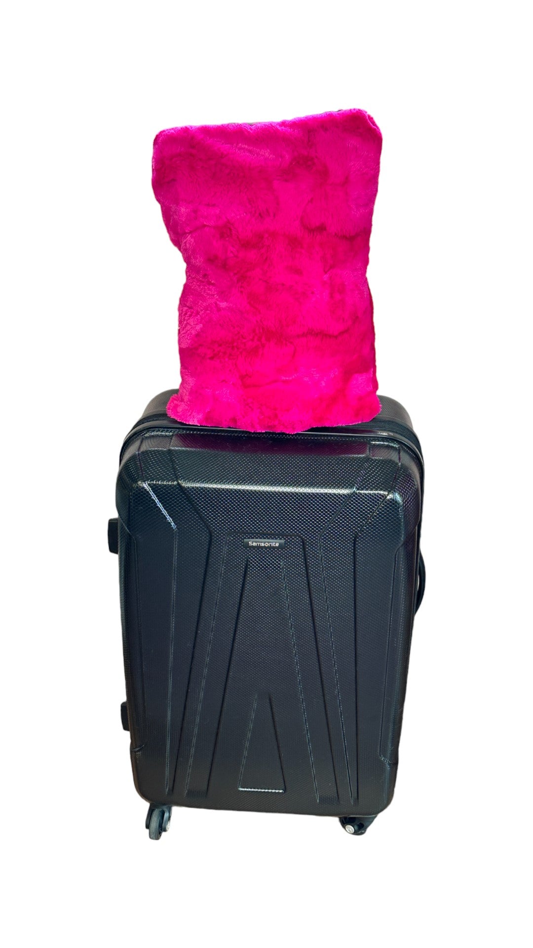 These soft colored flowers look beautiful on the fluffy Minky fabric with a surprise of color on the back in Minky hide cherise. approximate size unfolded 36" x 60" and folds up to 11" x 14"