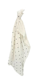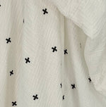 Creamy white gauze with a simple black design on gauze with a white gauze backside
