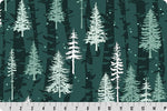Reminiscent of a forest in the Scandinavian winner, this boreal forest is dominated by beautiful green hues, broken up with pops of white accent trees and snowflakes with a bark inspired background. There are two choices for the flipside either snow or spruce both in my signature Minky fabric.