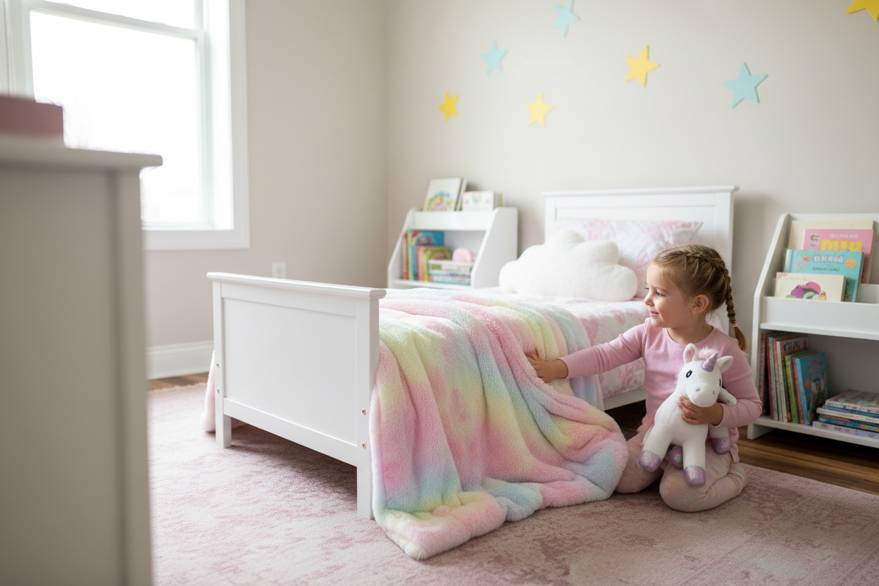 Crafted from ultra-soft, premium double-sided Minky fabric, this toddler blanket features the same plush Bunny Fusion texture on both sides for an extra cozy, cloud-like feel. The gentle swirl of pink, blue, yellow, and soft lavender tones creates a playful yet soothing look that feels as light and happy as childhood itself.