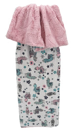 Llamas in shades of pink and teal with your choice of blush or ink hide minky on flipside